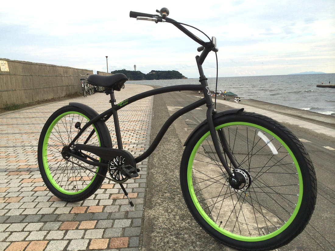 ビーチクルーザー 26インチ おしゃれ 自転車 通勤 通学 レインボービーチクルーザー 26TYPE-X マットブラック×グリーンリム メンズ レディース