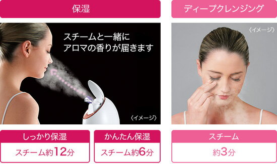 時間のある時はナノサイズのスチームで、集中エステ ナノサイズのスチームが、奥深く角質層まで浸透します。