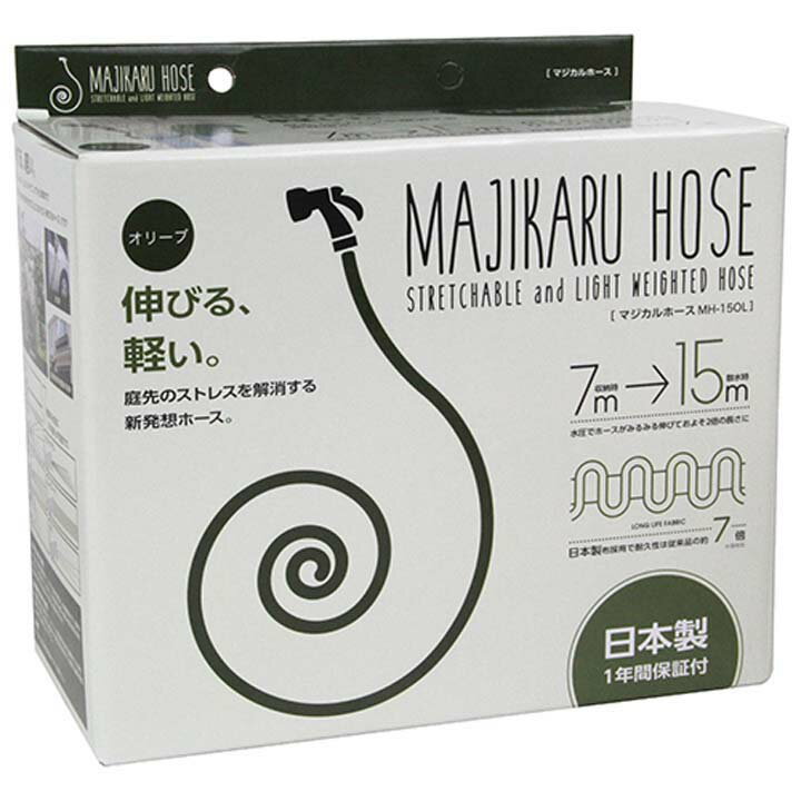 マジカルホース 15M OLホース 散水 コンパクト 伸縮 水撒き 軽量 伸びる のびる 軽い オリーブ・ブルー【D】
