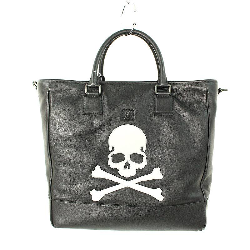 ロエベ/LOEWE ×マスターマインド/mastermind【AMAZONA 24H】伊勢丹限定スカルパッチレザートートバッグ(ブラック×ホワイト)【SB01】【小物】【402091】【中古】bb33#rinkan*A