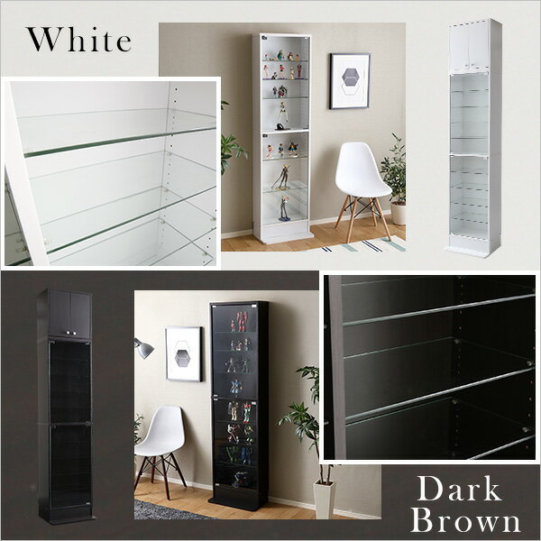 コレクションラック palace 奥行き19cm 浅型ハイタイプ ガラス 棚 本体 上置き セット ディスプレイラック コレクションケース フィギュアケース 壁面収納 一人暮らし【OG】 ホワイト ダークブラウン シンプル ベッド館
