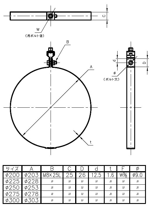 ☆アカギ 組式SP吊タン付 A10225-0112 W3/8-φ300 スパイラルダクト管用の組式吊バンド 配管支持金具 【RCP】