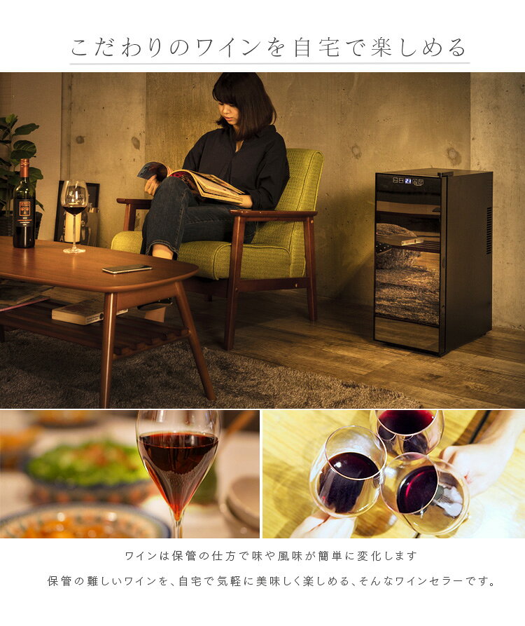 騒音や振動が少ないペルチェ方式!高級感溢れるデザインがお部屋のインテリアをオシャレにします!赤ワイン・白ワインいずれも冷却可能でコレ一つで楽しめます。