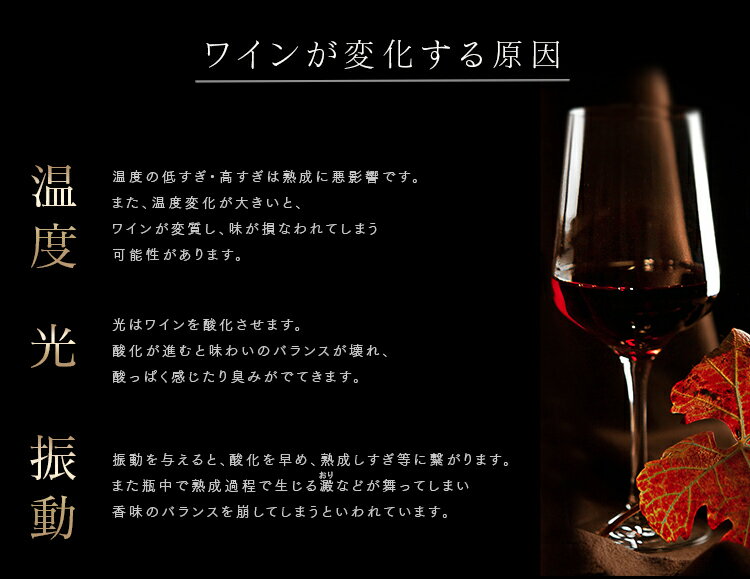 庫内温度の上昇によりワインに変質があっても保証できません。